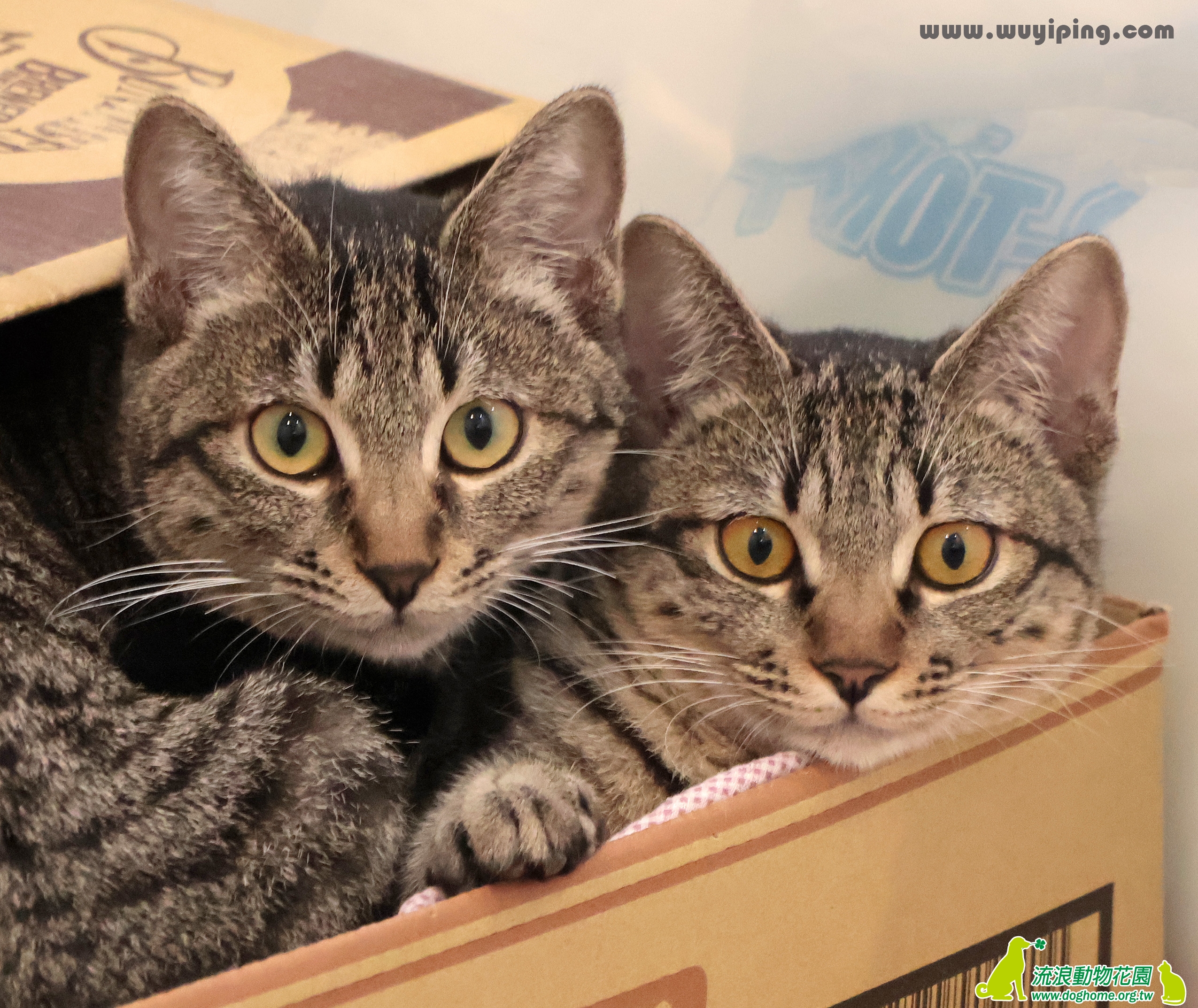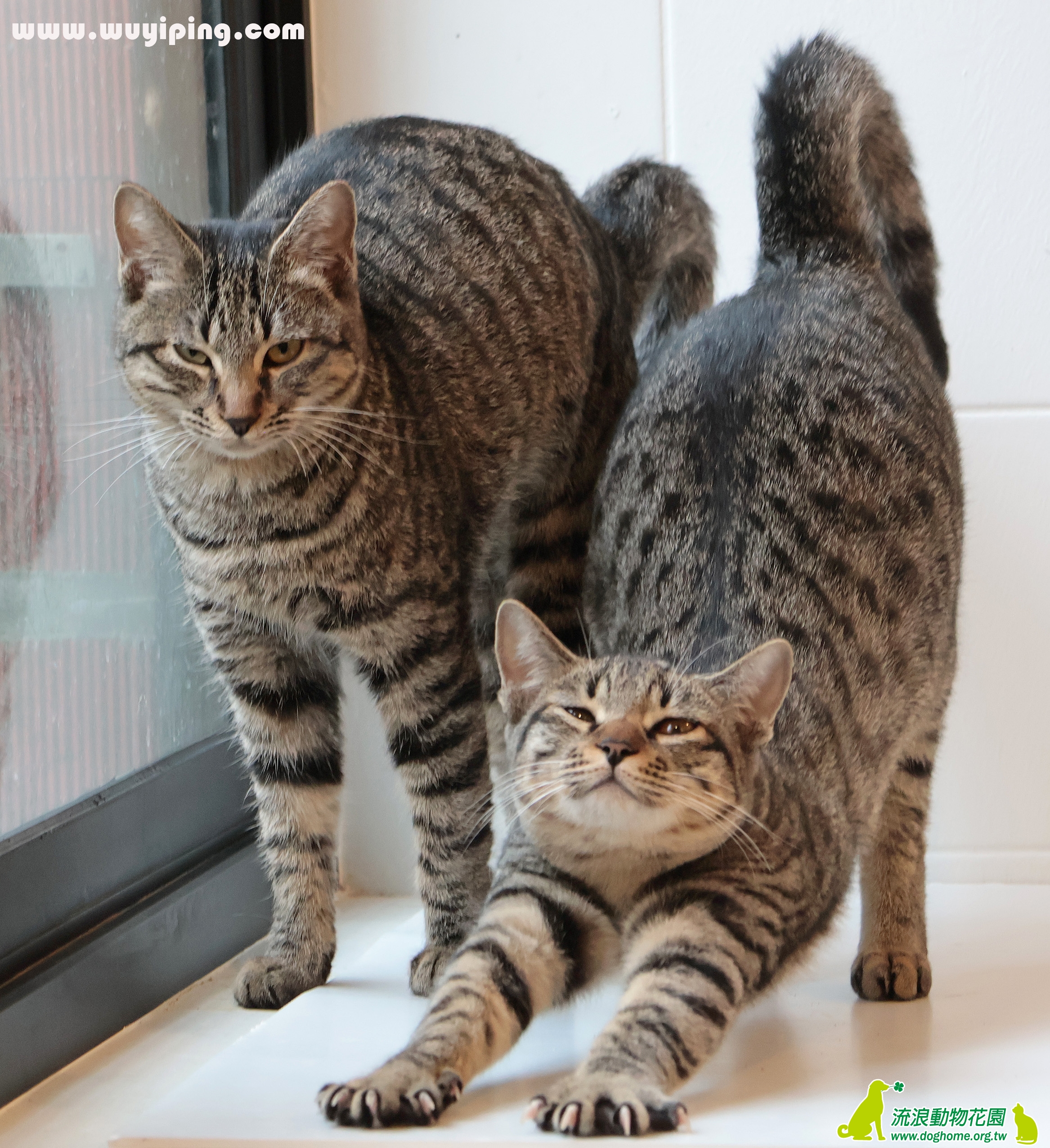 兩隻長得幾乎完全一樣的虎斑母貓還能叫什麼名字呢?當然就是虎姊虎妹了。虎姊虎妹不唬爛,真是有夠乖的,從來沒遇過這麼乖的貓,可摸可抱會呼嚕不亂叫不亂抓。兩隻黏在一起,你靠我我靠你,你伸懶腰我伸懶腰,有圖為證絕非AI,至於兩隻一起打哈欠的,那是我拍貓多年來夢寐以求的畫面,至今尚未達成,從這兩隻拍到的機會最大,趕快領養回去,然後您就可以拍貓拍得比我更厲害了。